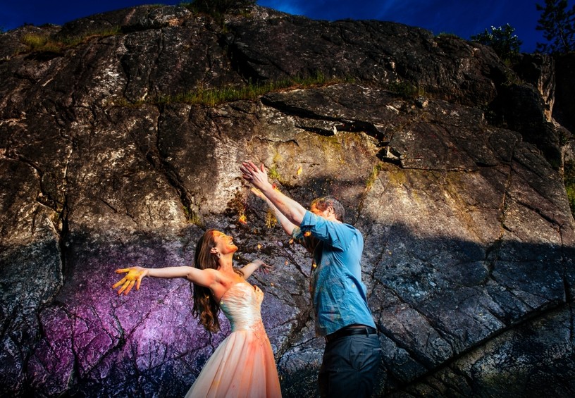 - Заранее обсудите с фотографом каждую идею. Так как реализовать за раз все (например, купание и бросание краской) вряд ли удастся, стоит выбрать что то одно. Обсудите со специалистом, как именно вы видите фотосессию до мельчайших деталей, ведь каждый кадр в ней неповторим.
