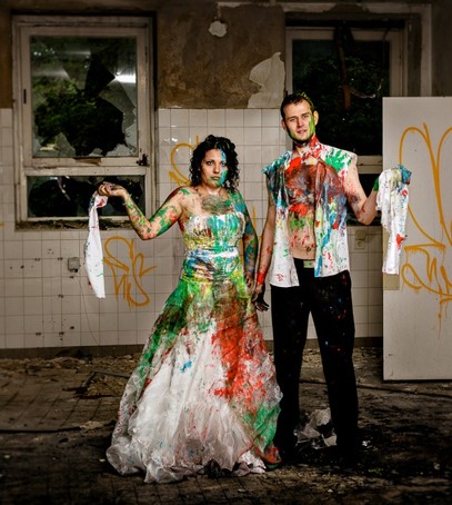 Но вот уже взрослые тети и дяди готовы рискнуть здоровьем ради потрясающих воображение кадров. Судя по тысячам свадебных луков, выложенных в интернете, невесты-женихи из многих стран уже поддались новому веянию в мире свадебной моды – речь идет о фотосессии “Trash the dress”, в процессе которой подвенечное платье, не снимая, превращают в тлен, мусор, хлам, отбросы, поджигают, рвут в клочья, уничтожают всеми возможными способами – кто во что горазд. И самое невинное из всего этого многообразия – в нем ныряют, плавают, обливают краской.