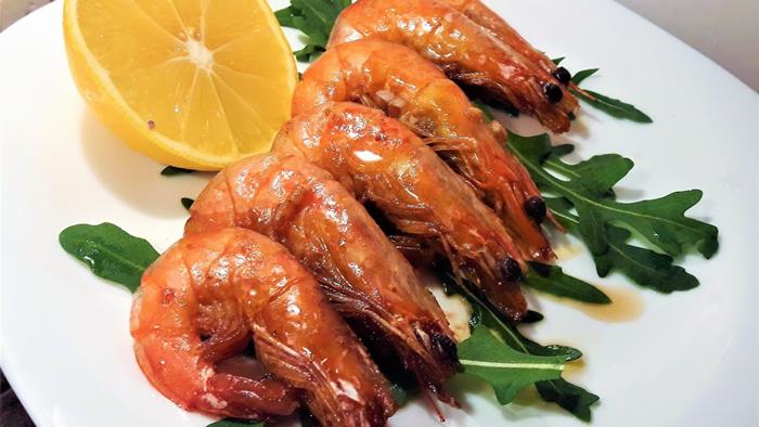 - Тигровые креветки приготовленные на гриле, подаются в соусе териаки