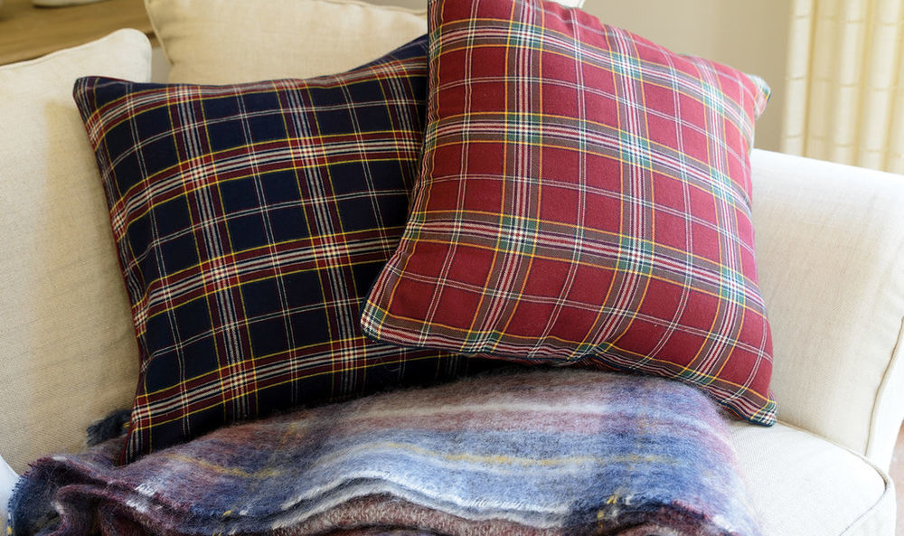 - клетка или тартан – узнаваемый во всем мире национальный орнамент. Пледы, скатерти, подушки, шторы, ленты на вазах. Цвета любые на ваш вкус, но подлинный тартан отличает гармония природных оттенков. Помимо ткани, можно распечатать картинки с подходящей фактурой;