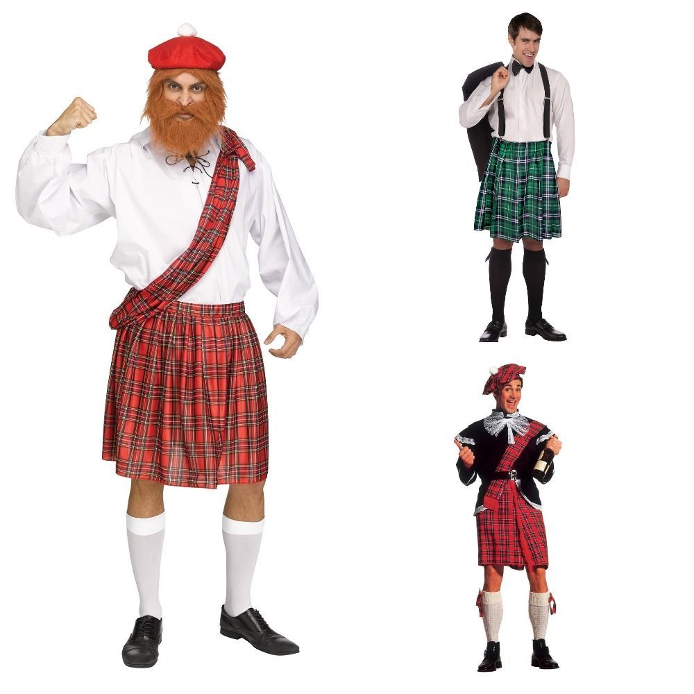 Что касается костюма, то помимо килта, мужские шотландские костюмы включают также гетры, рубаху, жакет или жилет, галстук или бабочку. На голове берет с помпоном и/или бантом, пером, брошью (символ клана). Килт на талии удерживает широкий ремень с массивной пряжкой, а спереди на поясе висит большой кошель.