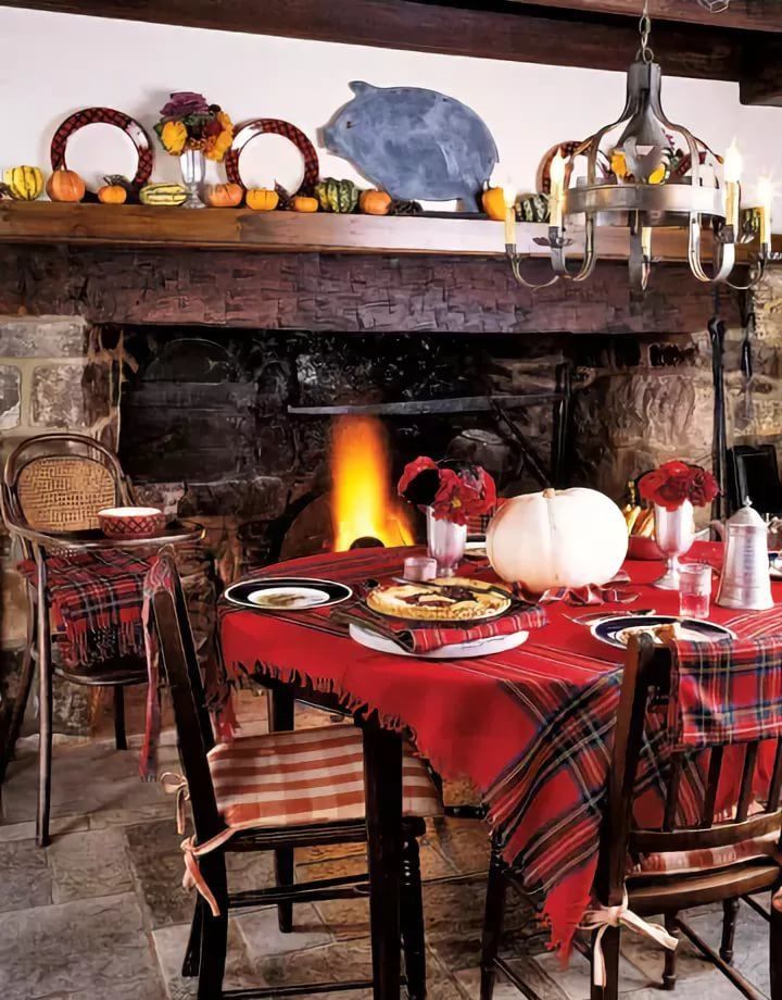 Для создания домашнего уюта сделайте бутафорский камин: приклеить поверх картонной «рамы» обои с фактурой камня, вырезать из бумаги языки пламени. Или био-камин в центре стола, объемные свечи группами, электрогирлянды. Ведь шотландцы считают себя огненным народом, и ни один национальный праздник не обходится без огненных атрибутов.