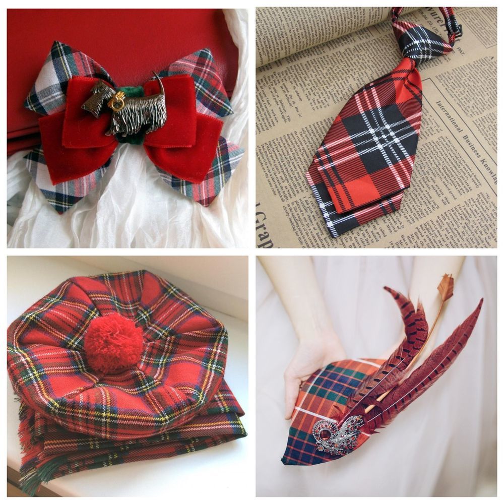 Если времени на подготовку мало, сшейте для всех аксессуары: береты, шарфы, клетчатые броши-бантики и тому подобное. Цвет определяет принадлежность к тому или иному роду — этот момент можно обыграть, по сценарию разделив гостей на две команды-клана.