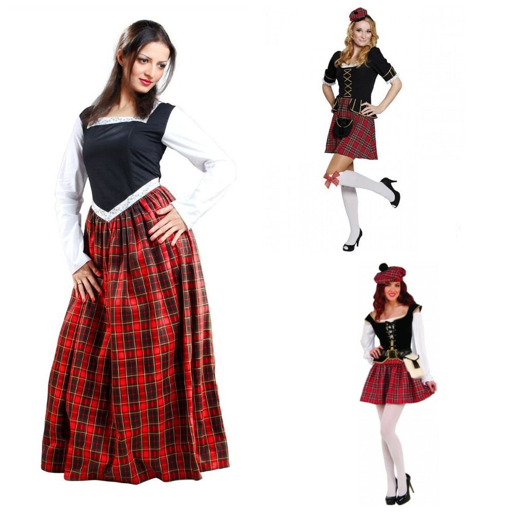 Женская шотландская одежда проще — платье в пол или блузка и длинная юбка. Широкие длинные рукава рубахи собраны на запястьях манжетами, фигуру подчеркивает корсет. Стилизованные женские костюмы шотландок — отличный вариант для вечеринки: удобные, в меру откровенные, яркие.