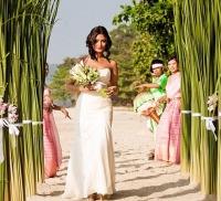 Среди арок с тропическими цветами, букетов и стоек с лентами, на берегу моря, в сказочной обстановке проходит Род Нам Санг.