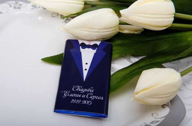 Если не хочется долго думать над воплощением презента, купите в подарок шоколад. Маленькие сладкие подарки всегда в тему! А если избегаете банальностей, закажите для гостей авторскую упаковку, отпечатанную в типографии.