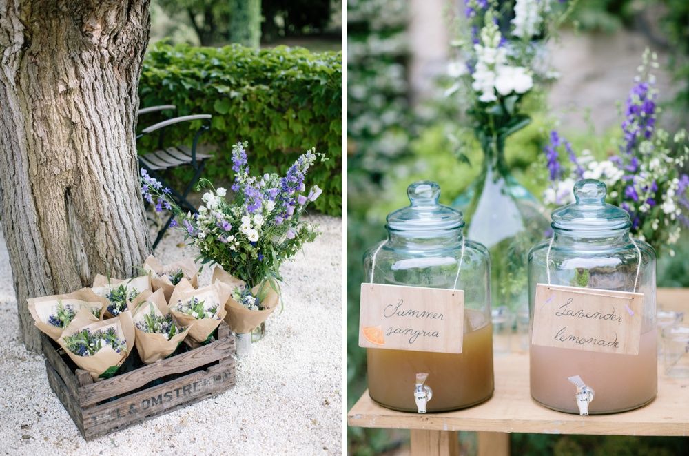 Приглашенным на свадьбу будет приятно получить от молодоженов небольшие памятные сувениры, напоминающие об этом празднике: это могут быть свечи с запахом лаванды, французские сладости, маленькие букеты лаванды в изящных горшках. Такие сувениры можно купить или сделать своими руками.