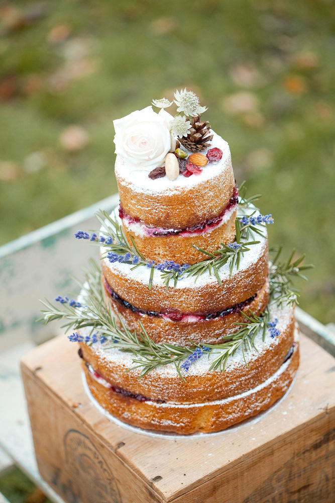 Торт может быть слегка неровным и даже неказистым внешне, – это позволит выдержать единый стиль свадьбы. Также на десерт можно подать макарун (французское печенье), яблочный пирог, свежие фрукты, капкейки, и – для любителей удивлять гостей – сырный торт.