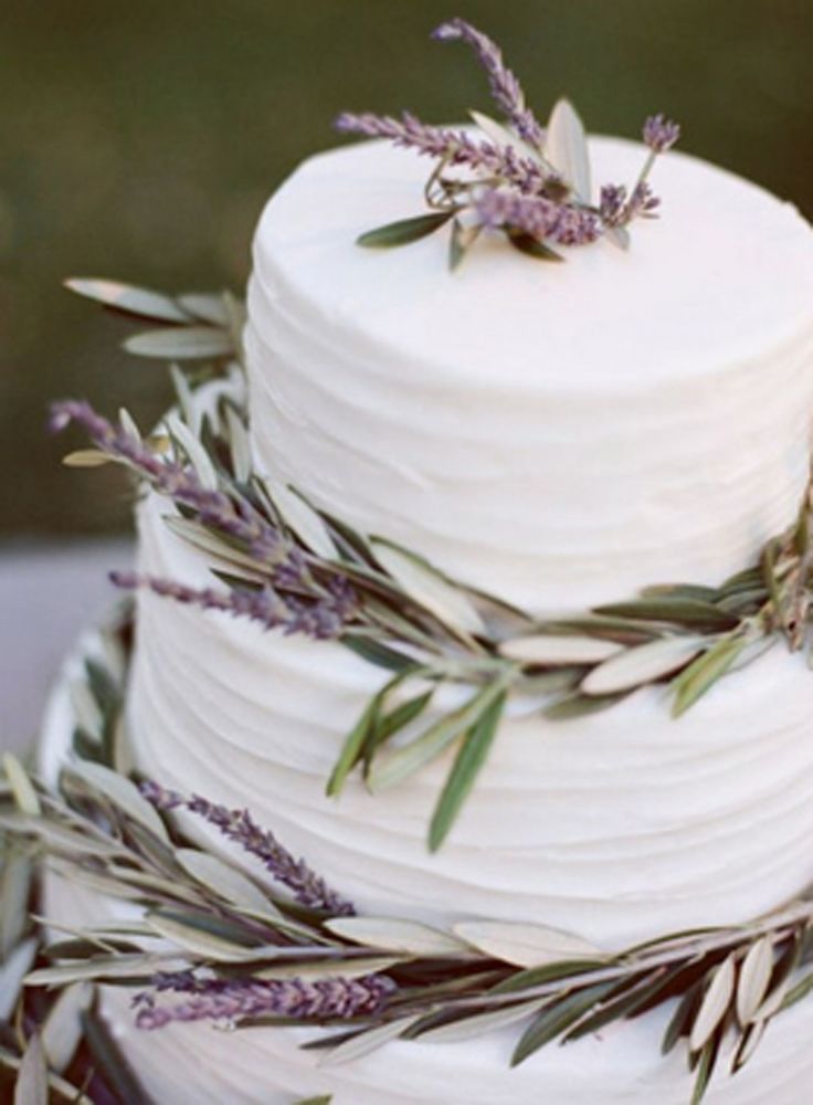 Правильнее будет заранее договориться с кондитером, чтобы он приготовил простой на вид торт, а для декора использовал взбитые сливки и лавандовые ветви. Очень уместен будет торт с эффектом омбрэ, где лавандовый цвет плавно переходит в молочный.