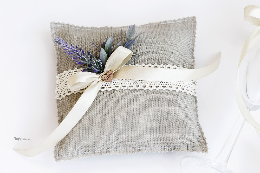 Для торжества в стиле Прованс подойдут свадебные аксессуары, которые будут отвечать теме праздника, к примеру, подушечка для колец из натурального льна, ее можно украсить хлопковым кружевом и лавандой. Другие свадебные аксессуары — бокалы, очаг, плечики для платья и другое, — также можно украсить подобными материалами.