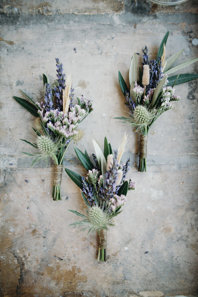 Важно! Бутоньерка жениха должна гармонировать с букетом невесты. Лучше всего взять несколько веточек лаванды, обмотать их красивыми лентами и прикрепить на лацкан пиджака или на рубашку новобрачного. Примеры выполнения бутоньерок можно найти вот тут.