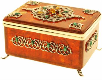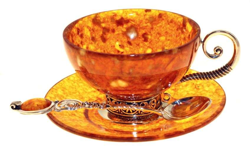 Красиво будут смотреться серебрёные ложки с янтарными вставками или фужеры, украшенные янтарной крошкой. Ну а самым оригинальным подарком могут стать шахматы, фигуры которого выполнены из янтаря. Впрочем, и этого материала могут быть сделаны нарды, шашки.