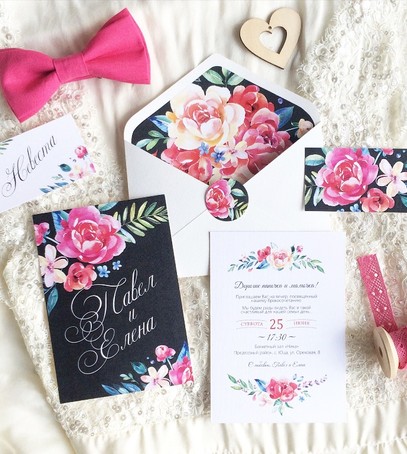 5. Среди бумажных вариантов в тренде находятся пригласительные с вышивкой, вырезными рисунками, оформленные в стиле акварель или написанные каллиграфическим почерком.