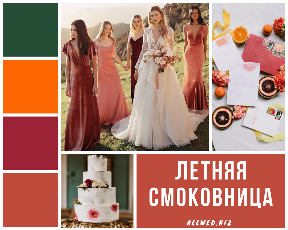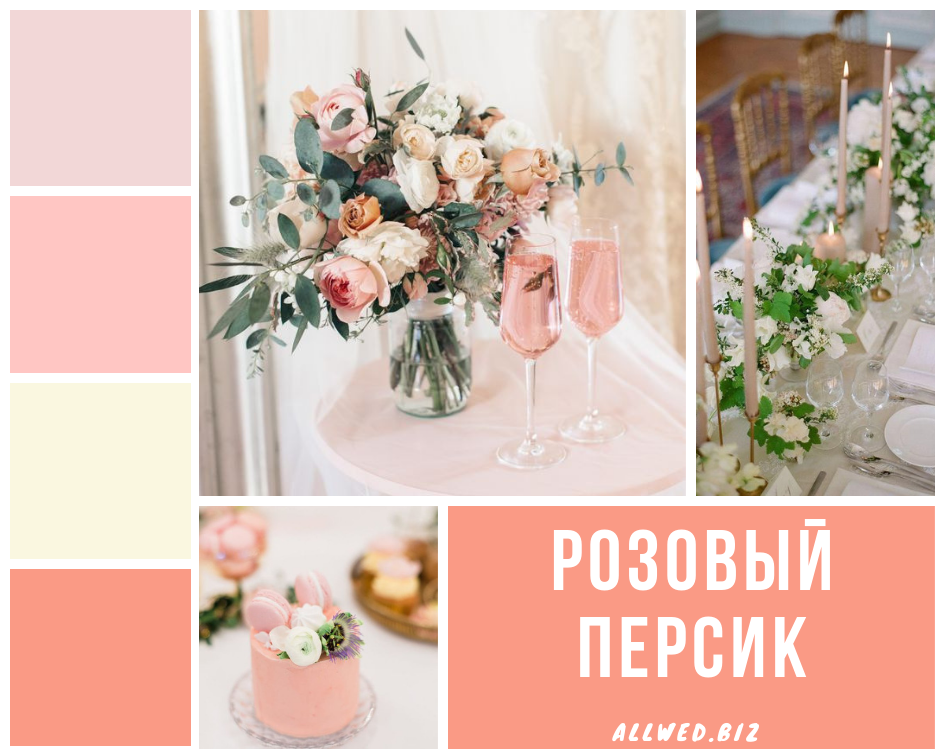 Если ваша свадьба планируется в теплое время этого года, обратите внимание на представленные ниже тона, которые ныне считаются самыми модными: